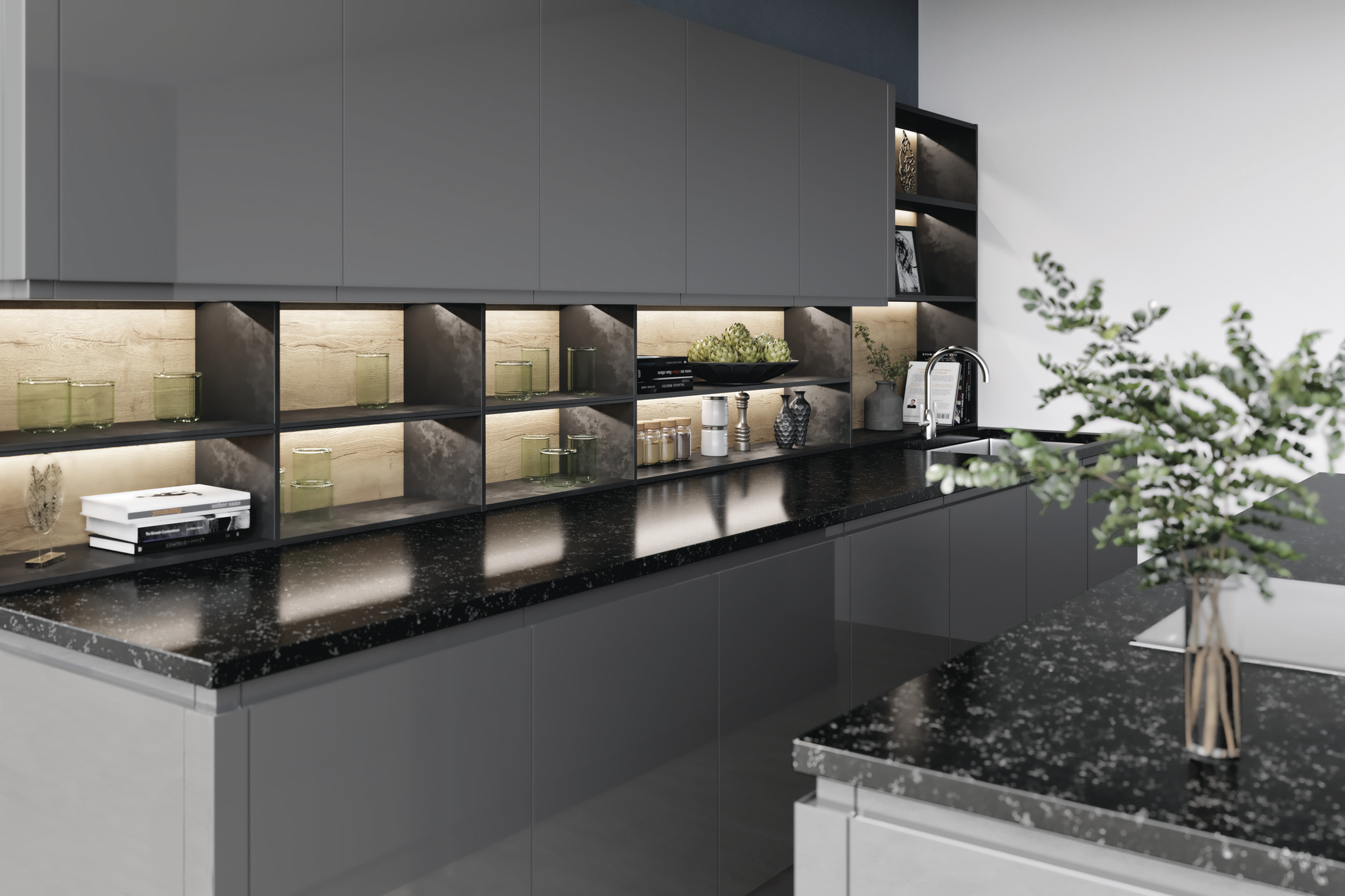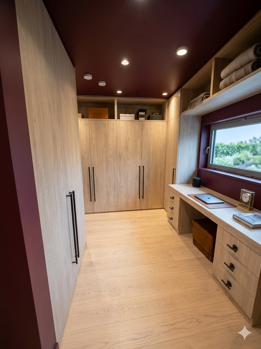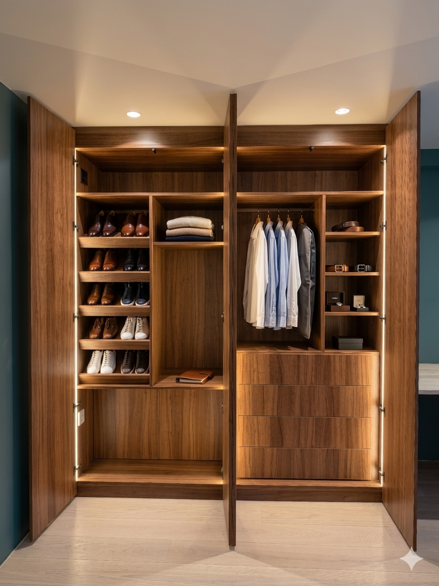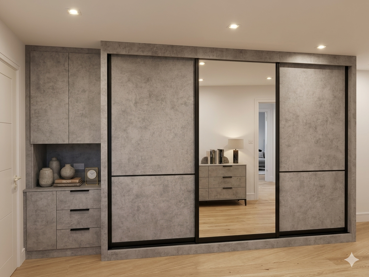 - Premium finishes: High gloss, matte, textured wood, glass, mirrored panels