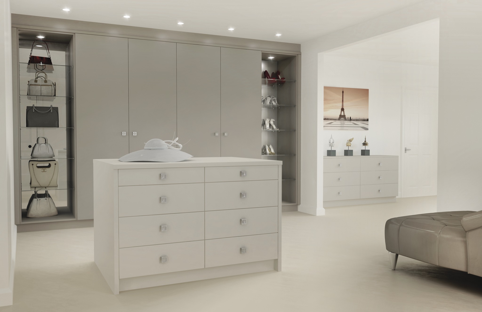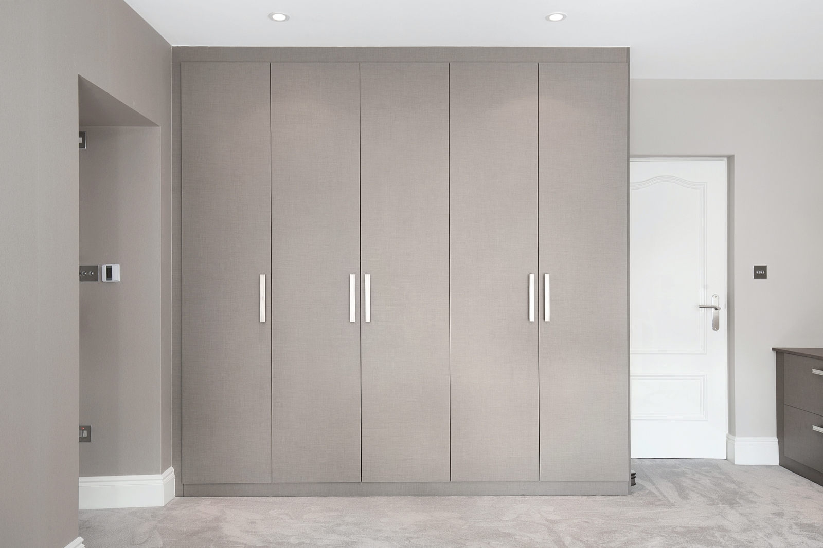 Explore our range of fitted wardrobes, including sliding, hinged, and walk-in designs, all thoughtfully created with innovative storage features to enhance both organisation and aesthetics.