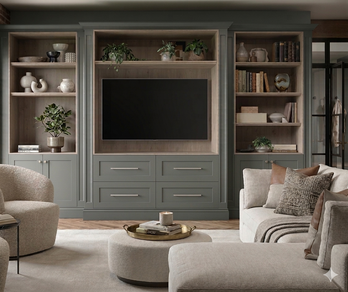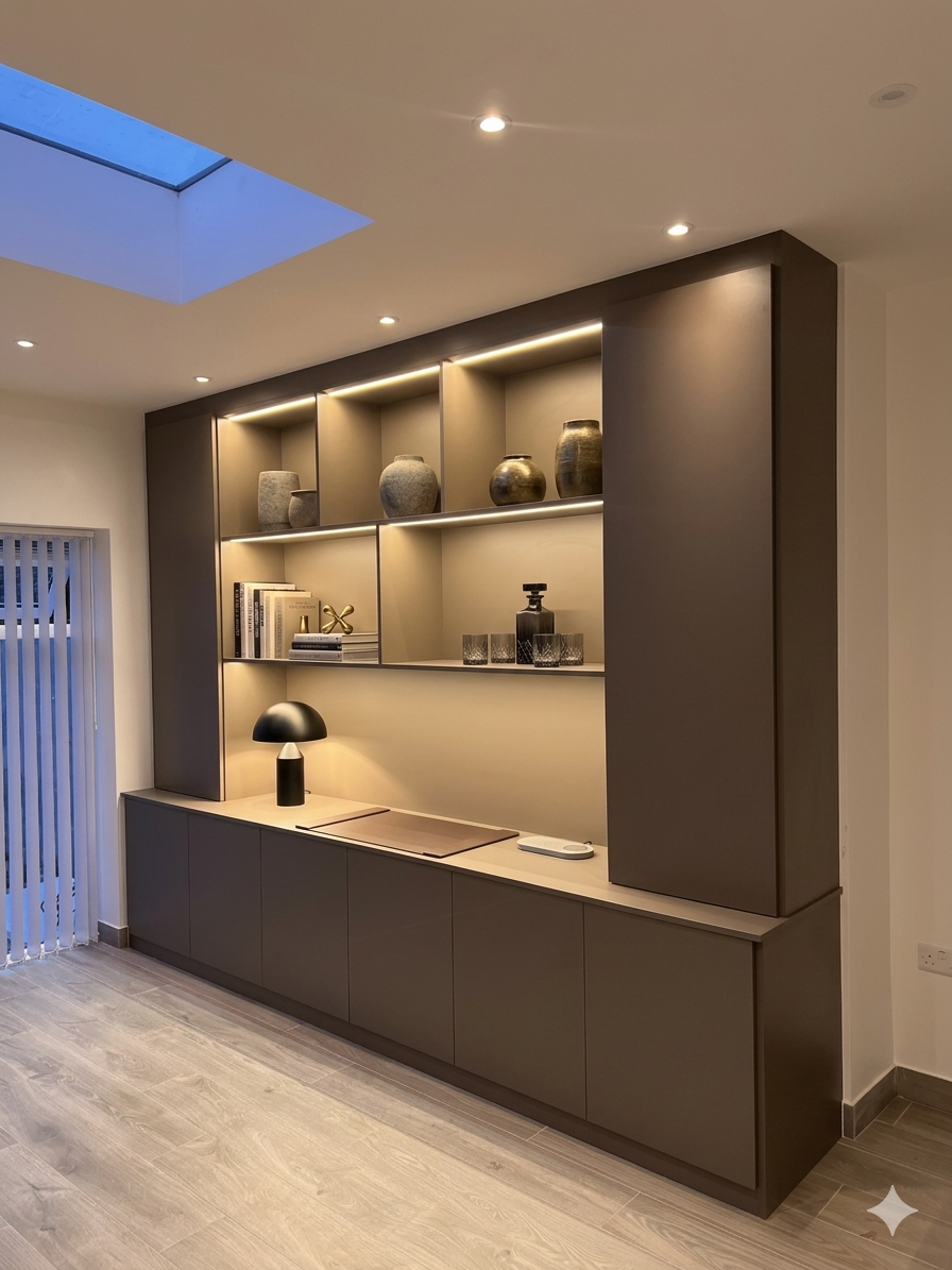 - Tailored features: Soft-close drawers, pantry larders, wine racks, pull-out storage