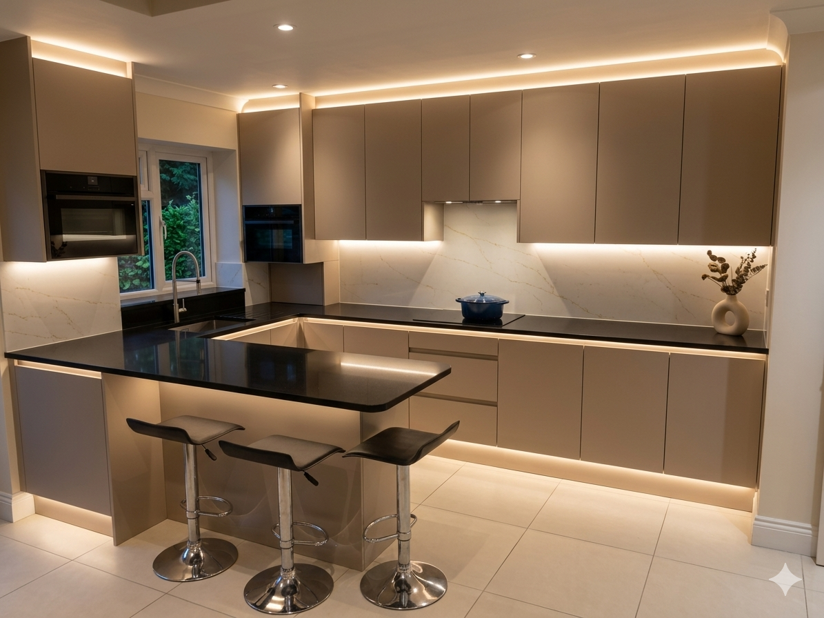 - Ergonomic layouts: Islands, breakfast bars, smart cabinets